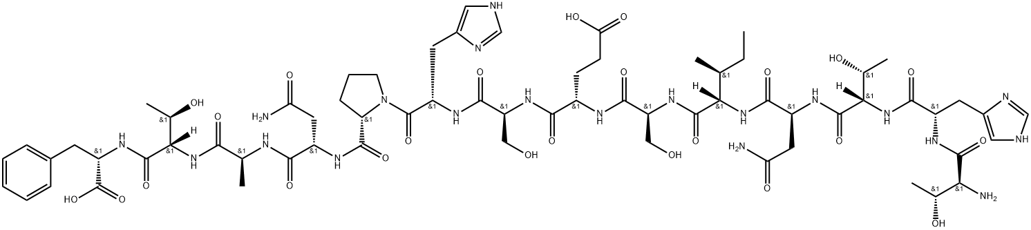 L-Threonyl-L-histidyl-L-threonyl-L-asparaginyl-L-isoleucyl-L-seryl-L-alpha-glutamyl-L-seryl-L-histidyl-L-prolyl-L-asparaginyl-L-alanyl-L-threonyl-L-phenylalanine L-Threonyl-L-histidyl-L-threonyl-L-asparaginyl-L-isoleucyl-L-seryl-L-alpha-glutamyl-L-seryl-L-histidyl-L-prolyl-L-asparaginyl-L-alanyl-L-threonyl-L-phenylalanine 78183-34-3 C66H98N20O24